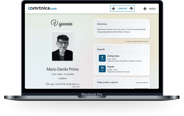 (ko urejate dokumente za pokop)Istočasno vam izdela brezplačno žalno spominsko stran.
